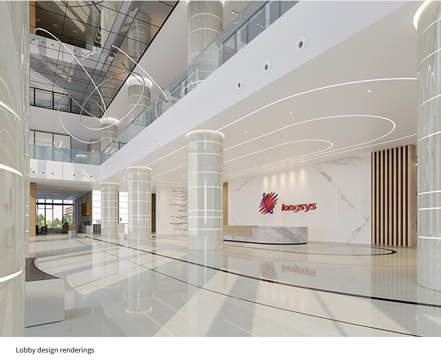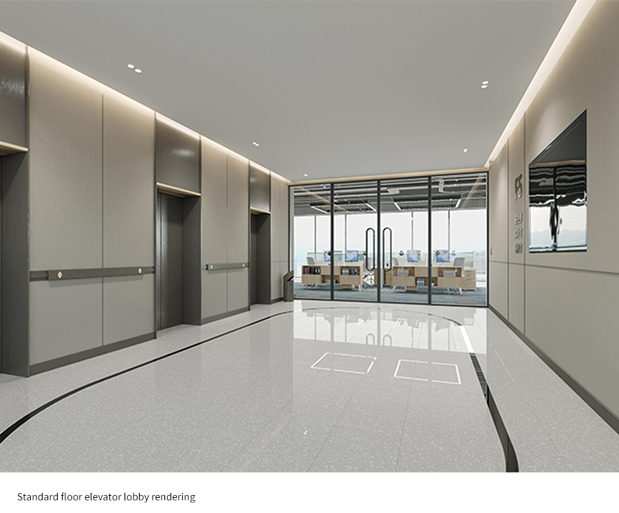 1. Spacious and Open Space: The building lobby adopts a high-ceiling design, making the entire space appear open and transparent, giving a grand and bright first impression, which can enhance visitors' favorability towards the enterprise.