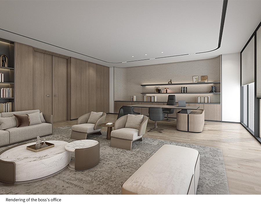 2. Emphasize Spatial Comfort and Functionality: The spatial layout is reasonable, facilitating daily office work while meeting the needs of receiving visitors and business negotiations.